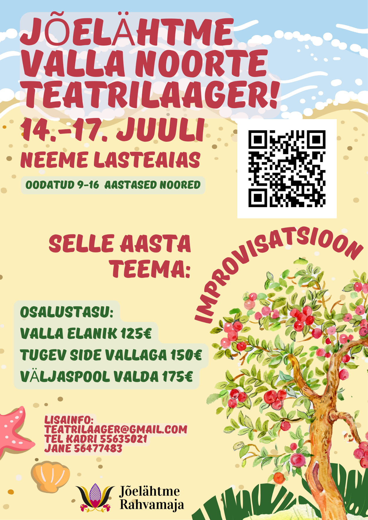 Lisainfo teatrilaager@gmail.com (Kadri 55635021, Jane 56477483)
