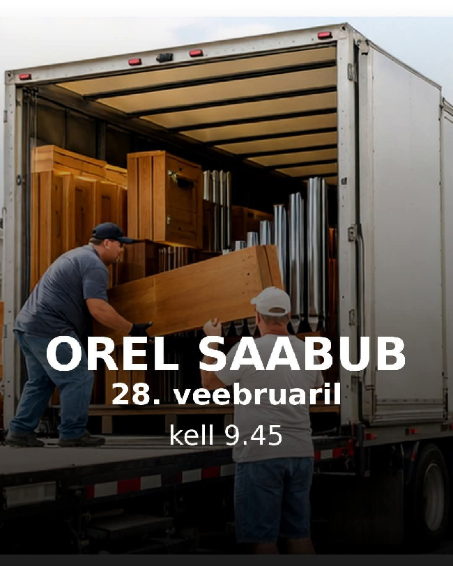 Jõelähtme Kirikumõisa Sihtasutus ootab abikäsi 28. veebruaril kell 9.45, mil orel jõuab Jõelähtme kiriku juurde. Sel päeval oleks vaja meeste abi, et kõik oreli detailid veoautost...