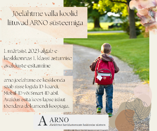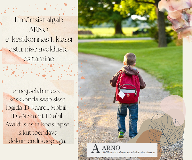 ARNO e-keskkonnas saab hakata 1. märtsist 1. klassi astumiseks taotlusi esitama. Jõelähtme vald tagab õppekoha põhikoolis kõigile valla haldusterritooriumile sisse kirjutatud...