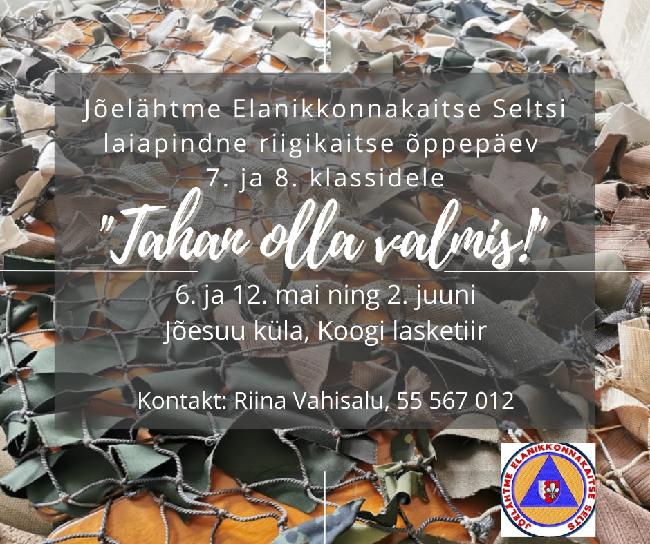 Jõelähtme Elanikkonnakaitse Selts MTÜ korraldab Loo ja Kostivere koolide 7. ja 8. klassidele laiapindse riigikaitse õppepäeva „Tahan olla valmis". Igale klassile eraldi korraldatavad...