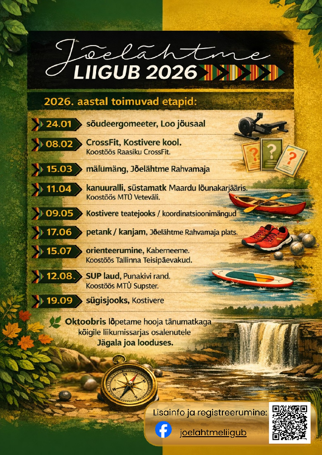 Liikumissari kutsub Jõelähtme valla perekondi, naabreid, kolleege ning sõpru piirkonna erinevate vaba aja veetmise võimalusi avastama. Pane 4-liikmeline võistkond kirja ja kohtume 15....