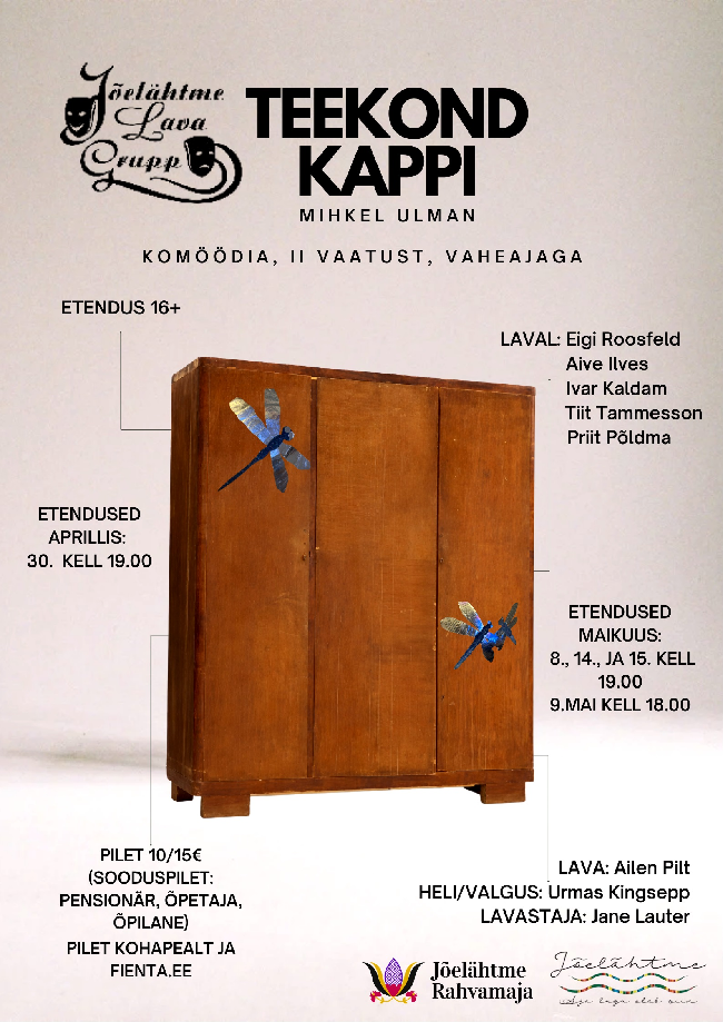 R, 24. aprill 09:50 Jalutuskäik Liis Lemsaluga– Loo kõnnib! 35 https://kalender.joelahtme.ee/kalender/jalutuskaik-liis-lemsaluga-loo-konnib-35/ R, 24. aprill 20:00 Elutants Lagedi mõisas...