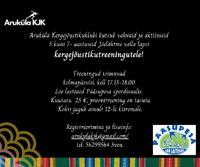 Registreerimine ja lisainfo: arukylakjk@gmail.com või 56299564 Sven.