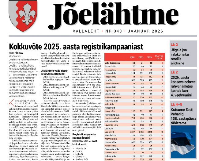 Vallaleht on juba digitaalselt loetav vallavalitsuse kodulehel: https://joelahtme.ee/2026-aasta-valjaanded