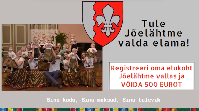 Sinu kodu, Sinu maksud, Sinu tulevik Registreeri end Jõelähtme valla elanikuks ja võida 500€. Investeeri oma kogukonda Jõelähtme vald asub Tallinna kesklinnast vaid 20 minuti...