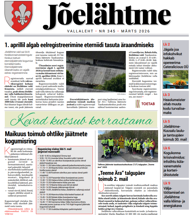 Vallaleht on digitaalselt loetav vallavalitsuse kodulehel:  https://joelahtme.ee/2026-aasta-valjaanded Lugemist on muuhulgas järgmistel teemadel: Heaolumeister aitab vähese...