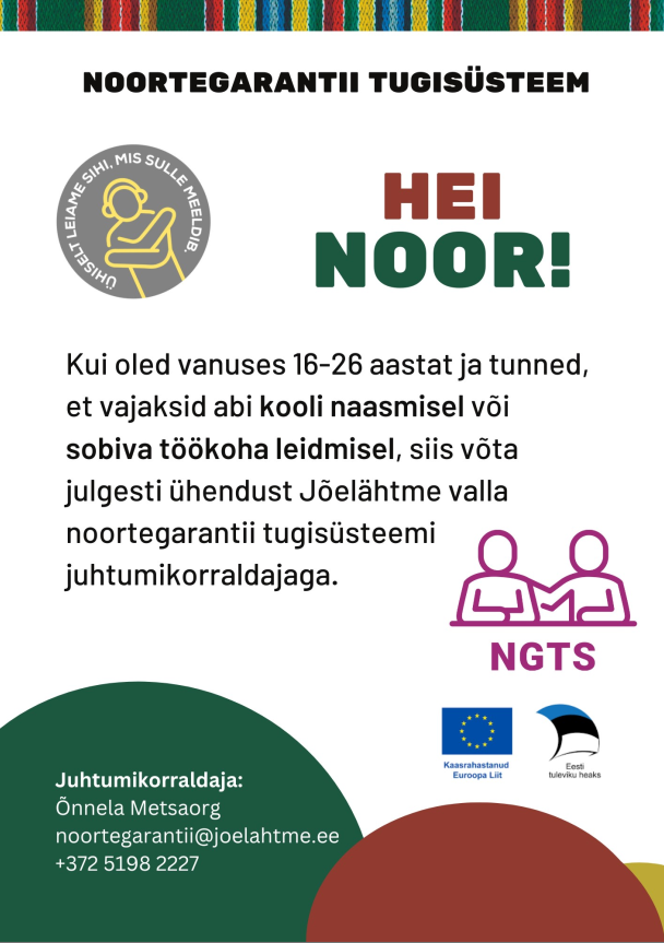 Kõigil noortel ja nende lähedastel, kes tunnevad, et noorte heaolu spetsialistist võiks abi olla või vajaksid lihtsalt tuge edasise tööelu või haridustee jätkamisel, on võimalus noorte heaolu spetsialistiga ühendust võtta e-posti aadressil noortegarantii@joelahtme.ee või telefonil +372 5198 2227.