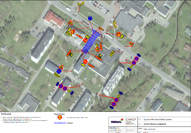 Lisatud asendiplaan, tööde teostamise ala ja liiklusskeemid antud tööde ajaks.