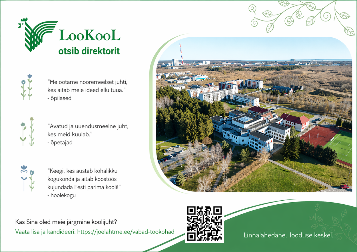 Kui Sulle meeldib koos kolleegidega õppeprotsessi kaasajastada ja mitmekesistada, oled osav meeskonna juhtija ning õpilase arengu toetamine ja inspireeriva õpikeskkonna kujundamine panevad Sinu silmad särama, siis oled oodatud kandideerima Loo Kooli direktori ametikohale.