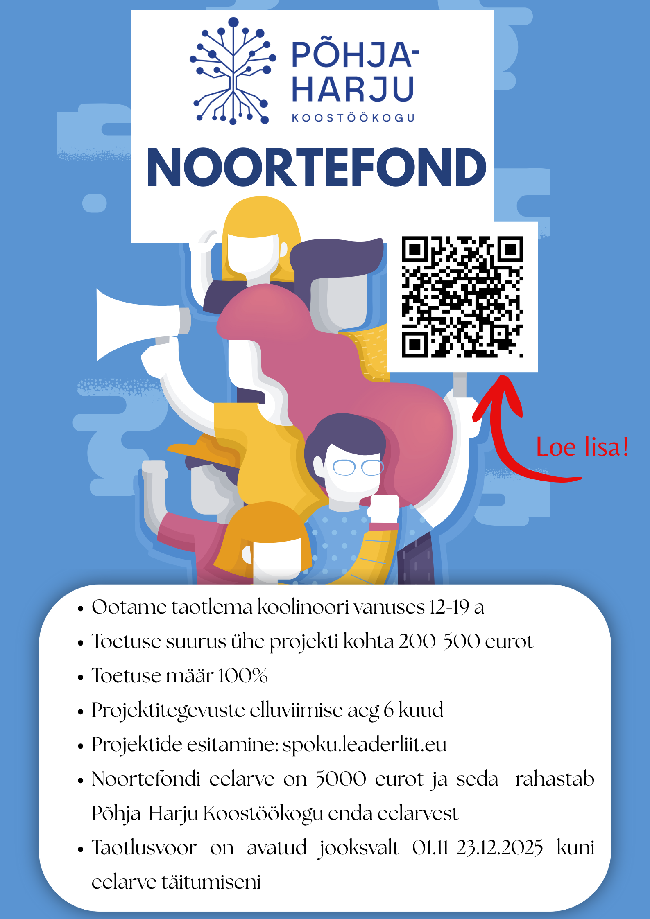 Noorte väikeprojektide eelarve 2025. aastaks on 5 000 eurot ning seda rahastab Põhja-Harju Koostöökogu enda eelarvest