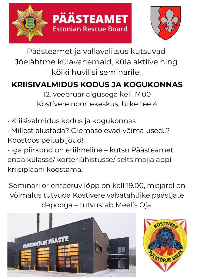 Päästeamet ja Jõelähtme vallavalitsus kutsuvad Jõelähtme külavanemaid, küla aktiive ning kõiki huvilisi seminarile: