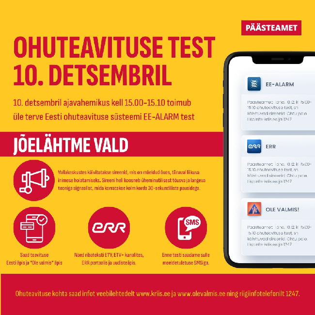 Päästeamet testib kolmapäeval, 10. detsembril üleriigiliselt ohuteavituse süsteemi EE-ALARM.